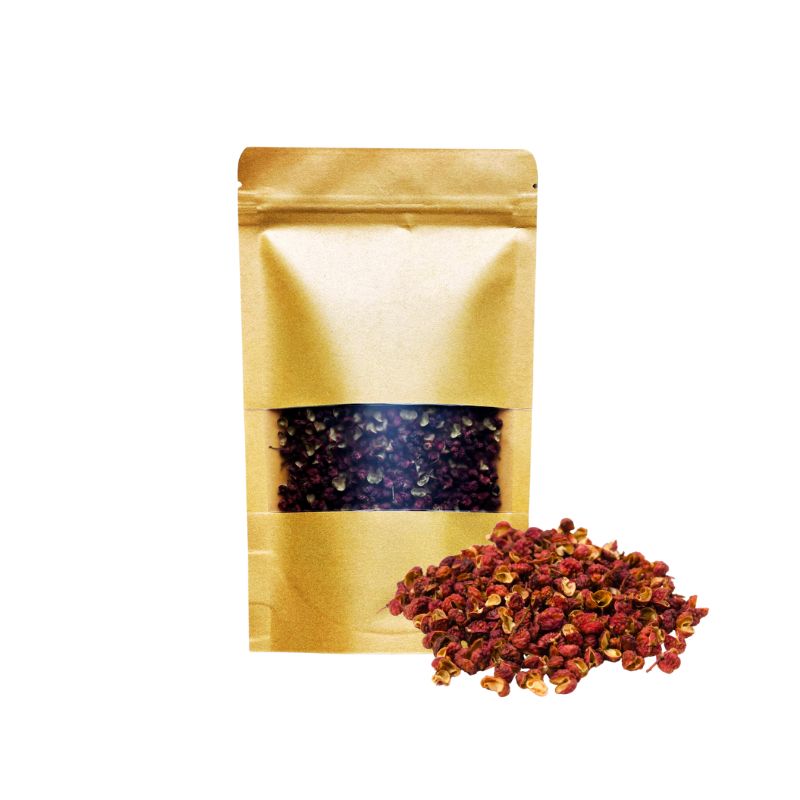 Red Sichuan peppercorns are harvested when they are fully mature and have turned a reddish-brown color. They have a stronger and more pungent flavor with a woody and earthy aroma, and their numbing effect is much more intense compared to the green Sichuan peppercorns.