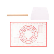 1 silicon baking mat, 1 rolling pin and 1 dough scraper tailored for starters.