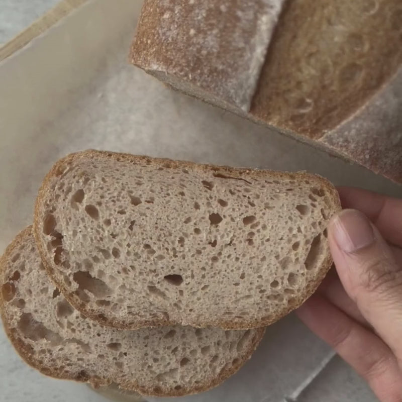 Our sourdough bread is made from the fermentation of gluten-free flour and filtered water, resulting in naturally occurring lactobacilli and yea