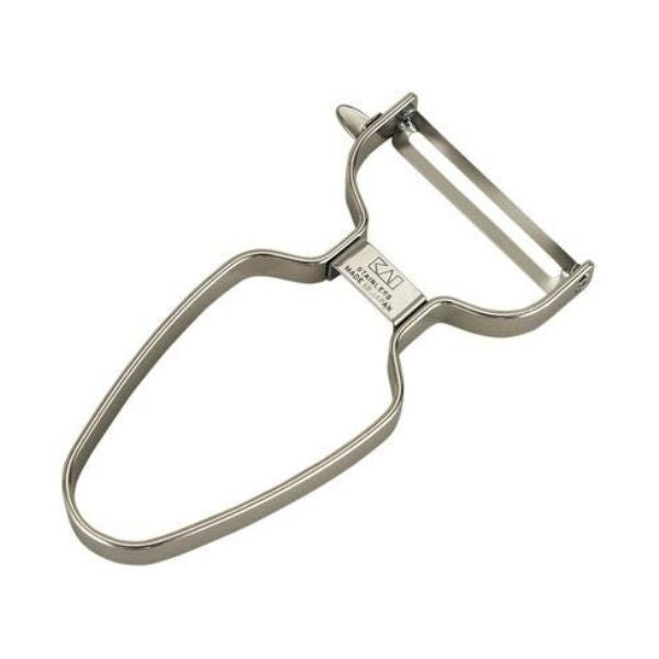 丈夫で衛生的なステンレス製のピーラーです。皮むき時に食材が見えやすく、持ちやすいハンドル形状で、じゃがいもの芽取り付です。