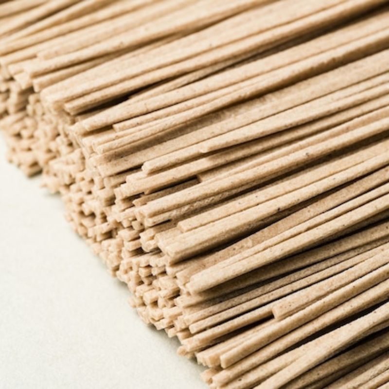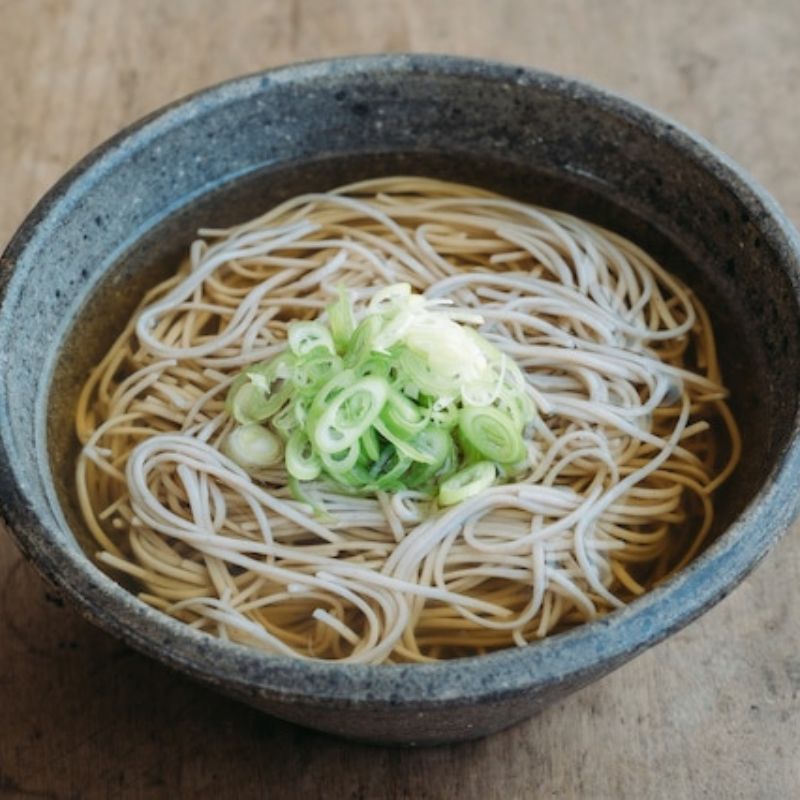 100% buckwheat soba made without any additives or preservatives, using organic JAS-certified buckwheat flour.