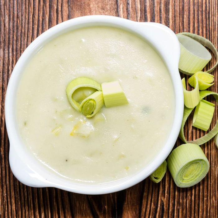 Leeks can be eaten cooked or raw. Thinly slice and use raw as a salad topping, or add to mixed vegetables before oven roasting. One of the most famous dish will be vichyssoise, a traditional potato-and-leek soup served cold.