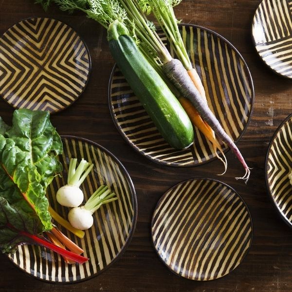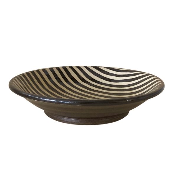 Ikutouen SEN-3 沖繩手工製作條紋陶瓷碟 - 22 x 5cm