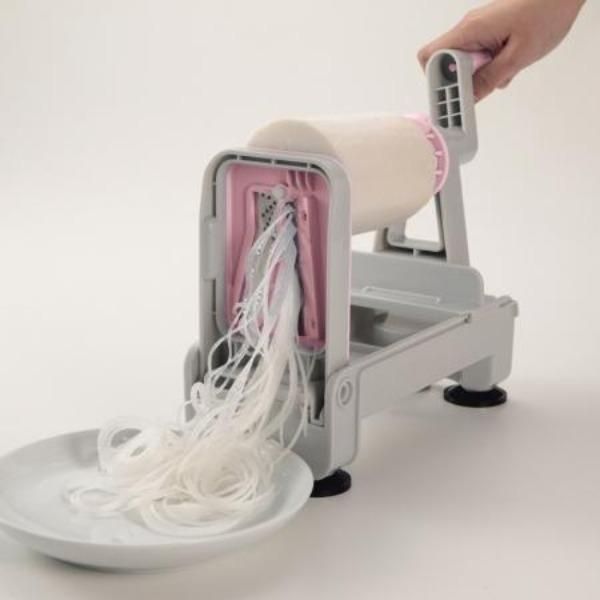 只需轉動手柄即可輕鬆製作大量素食麵條。