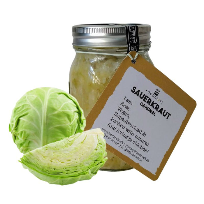 德國酸菜是由切碎的新鮮椰菜,經過各種乳酸菌包括明串珠菌、乳桿菌和球菌發酵而成的。 它具有由細菌發酵椰菜中的糖分時形成的乳酸所產生的天然酸味。 (無添加醋!)